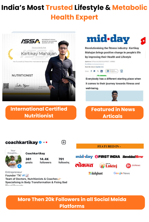 Lost 20 kg. Cholesterol reduced (~245 → ~190 mg/dL) and liver markers normalised after lifestyle correction — built for long-term sustainability.